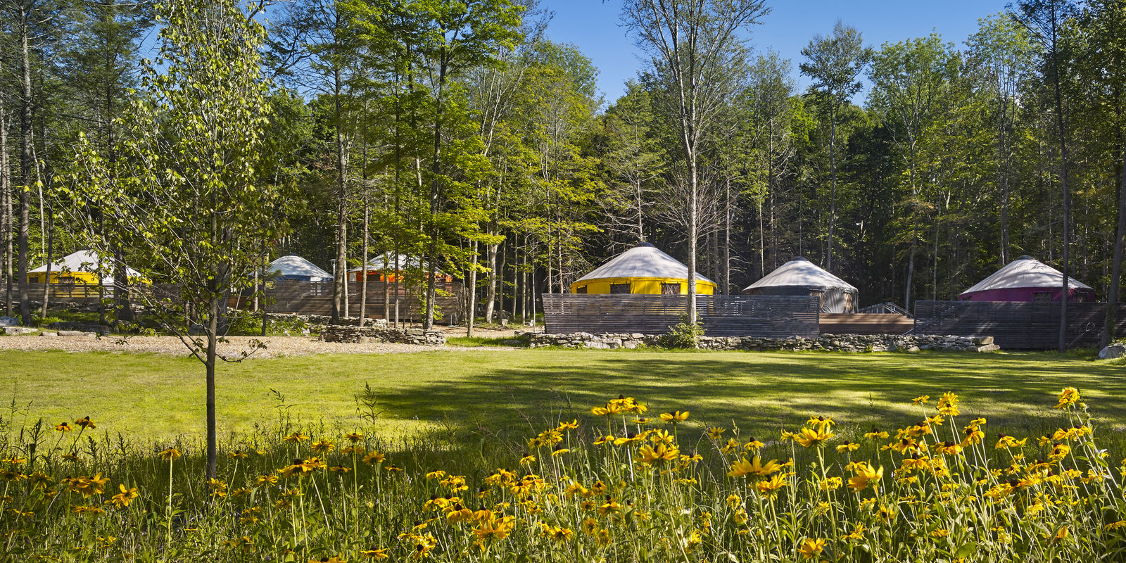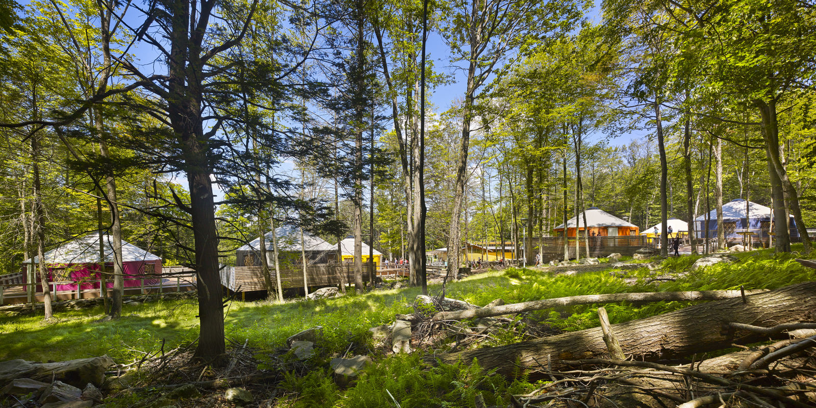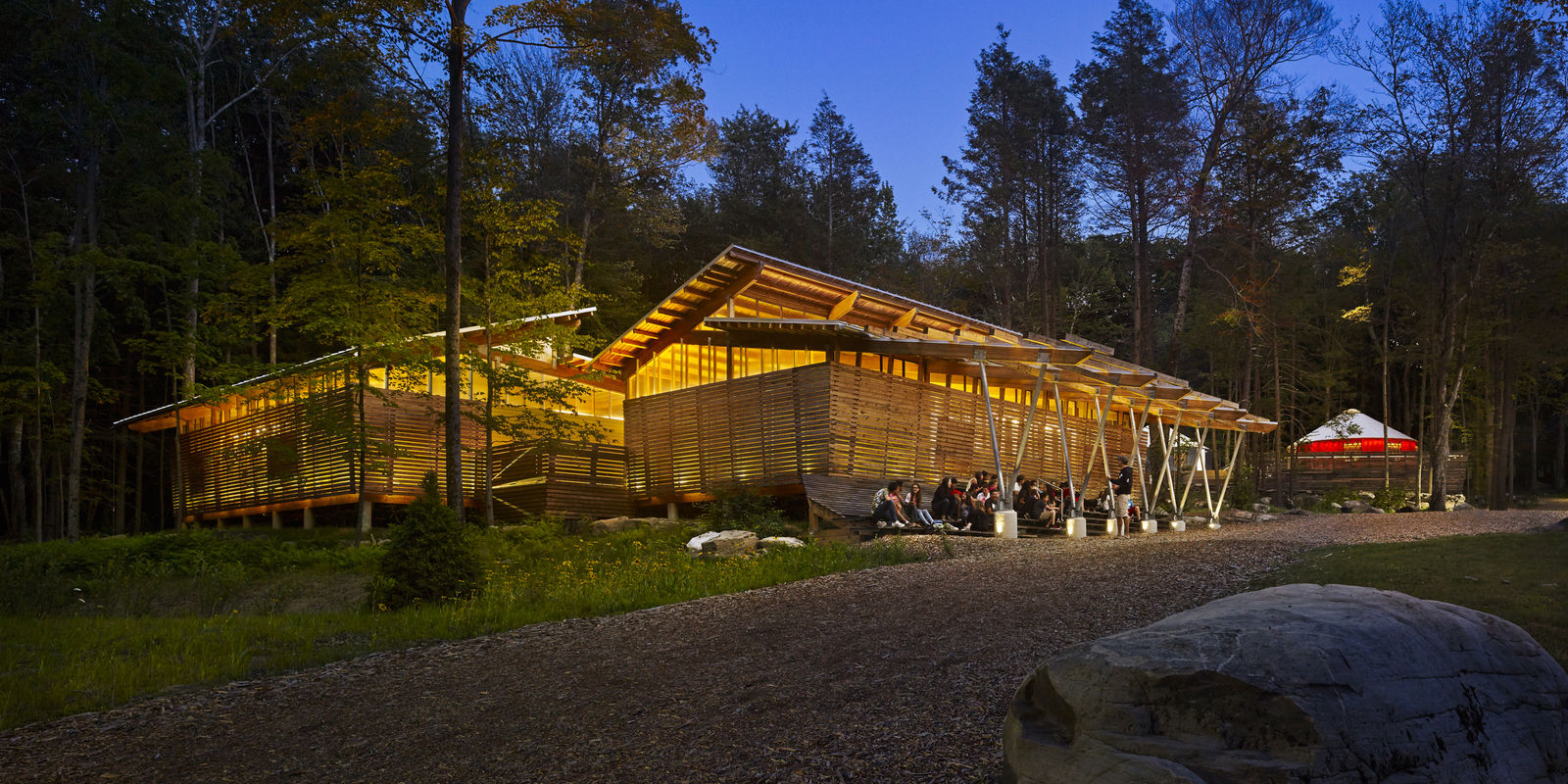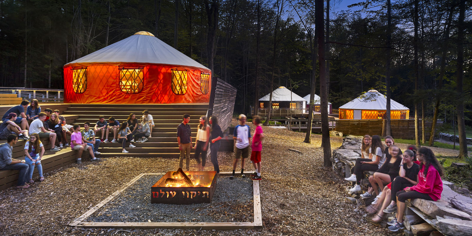Camp Havaya's (aka Camp JRF) summer camp expansion harnesses the power of social experience, using a solar-powered, 6,000-square-foot performance building, yurts with communal fire pits, and a bathhouse with outdoor meeting areas. Metcalfe designed a sustainable campus for 90 residents by including solar hot-water heating, rain gardens, solar PV panels, recycled materials, decking made of recycled plastic, and energy-efficient lighting.
