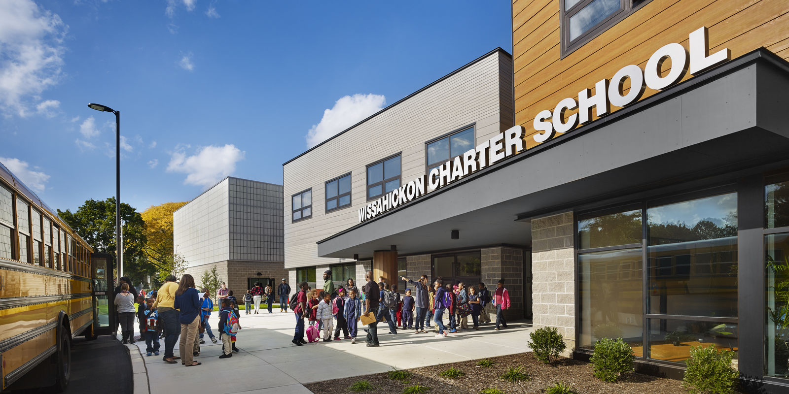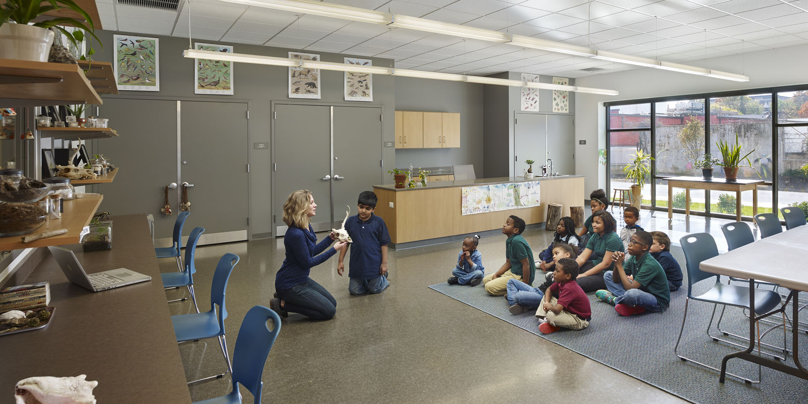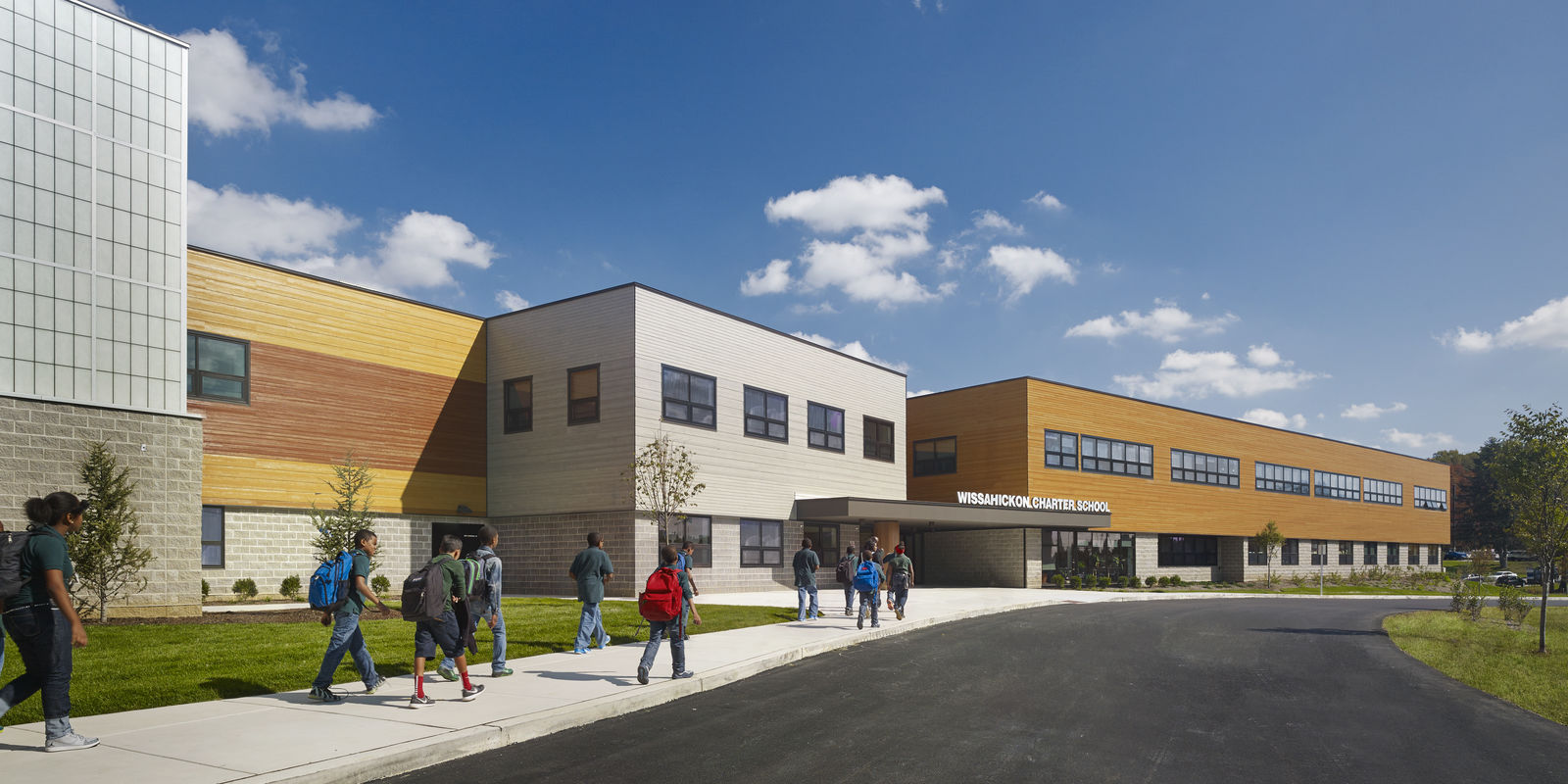 Metcalfe worked with Wissahickon Charter School (WCS) to design a new 48,000-square-foot school building, on a brownfield adjacent to the Awbury Arboretum in Germantown. WCS’s mission focuses on the environment, service learning, and family involvement. Its new home is a light-filled, sustainably constructed building featuring a green roof, public meeting spaces, composting, a student-run bio-diesel program, rainwater permeable parking and sidewalks, and a programmatic connection to the Awbury’s gardens and farmland for outdoor education. The school’s entry and hallways are punctuated by social spaces that facilitate informal learning and social interaction.