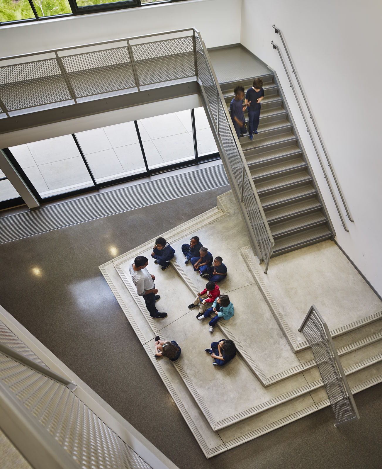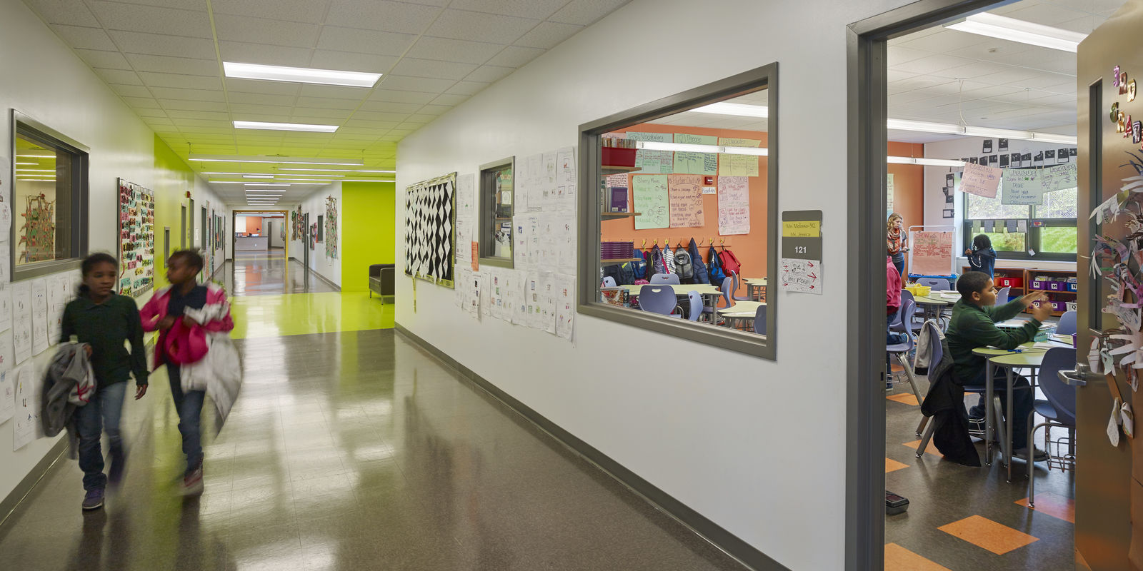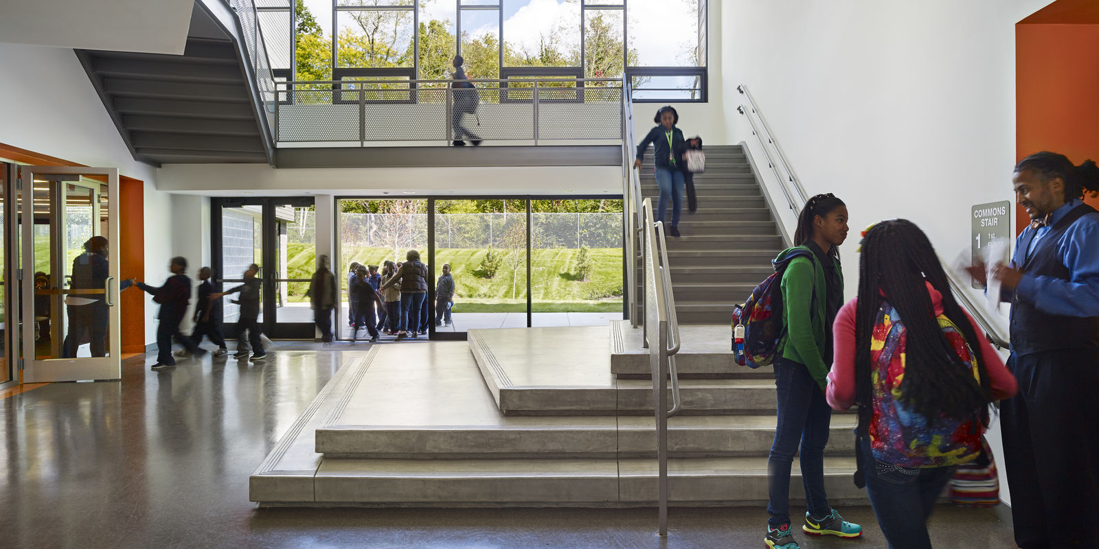 Metcalfe worked with Wissahickon Charter School (WCS) to design a new 48,000-square-foot school building, on a brownfield adjacent to the Awbury Arboretum in Germantown. WCS’s mission focuses on the environment, service learning, and family involvement. Its new home is a light-filled, sustainably constructed building featuring a green roof, public meeting spaces, composting, a student-run bio-diesel program, rainwater permeable parking and sidewalks, and a programmatic connection to the Awbury’s gardens and farmland for outdoor education. The school’s entry and hallways are punctuated by social spaces that facilitate informal learning and social interaction.