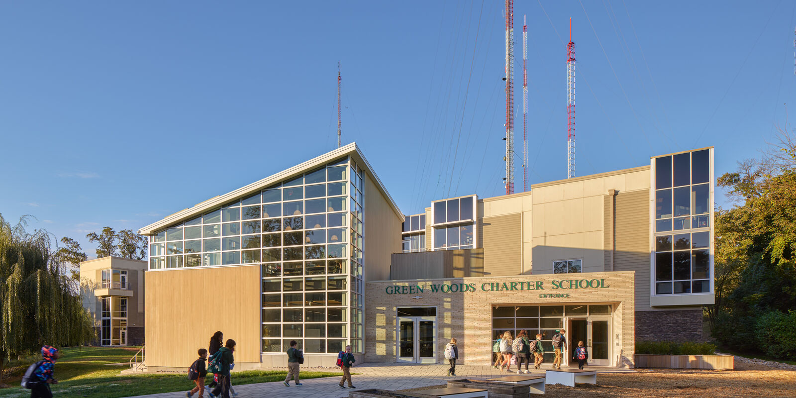 Green Woods Charter School’s mission is to foster in students a keen understanding of their interdependence of and impact on the world. Following previous work with the school developing a nature play area, Metcalfe designed a new addition to support the school’s outdoor-centric pedagogy.
